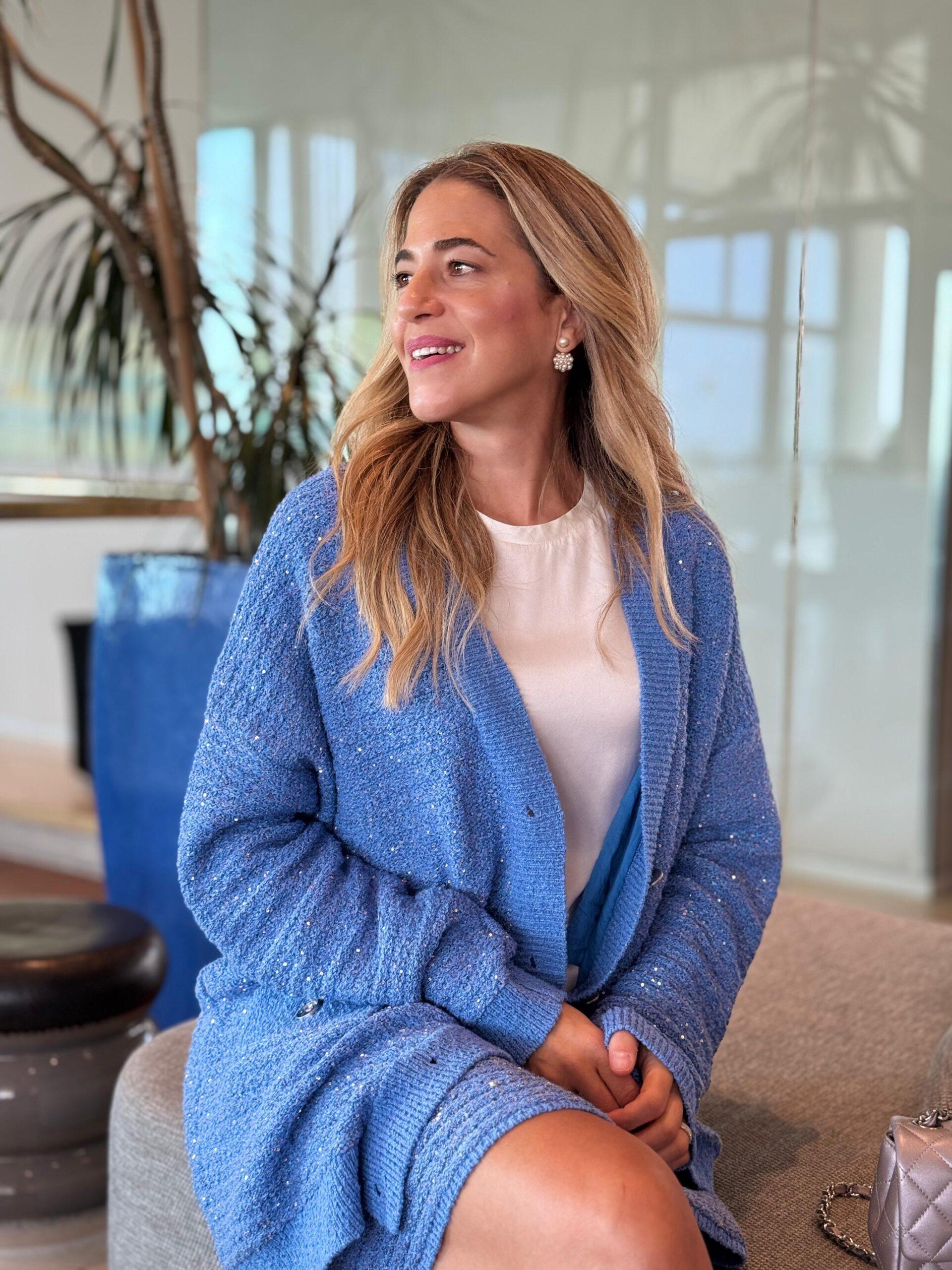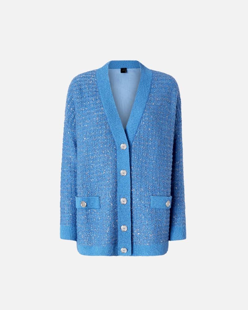קרדיגן פינקו מטאלי בקליעת סלים עם נצנצים